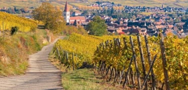 Al final del bosque llegarás a un paisaje encantador y abierto de la región vinícola de Alsacia, en Francia, donde podrás circular a un ritmo más relajado. Si te gusta la historia y quieres hacer alguna parada, a lo largo de tu viaje vas a poder visitar desde ruinas romanas hasta las murallas fortificadas de Rothenburg ob der Tauber. Verás que la región parece sacada de un cuento de hadas.