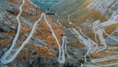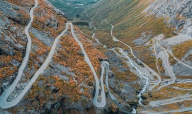 Trollstigen significa la escalera del troll y si decides realizarla en moto te darás cuenta de por qué. Se trata de un empinado tramo de montaña que forma parte de la carretera nacional noruega 63. La Nacional 63 conecta las ciudades de Åndalsnes y Valldal en la comarca de Romsdal. El paso de Trollstigen se encuentra a unos 20 kilómetros al sur de Åndalsnes, en la provincia de Møre og Romsdal.